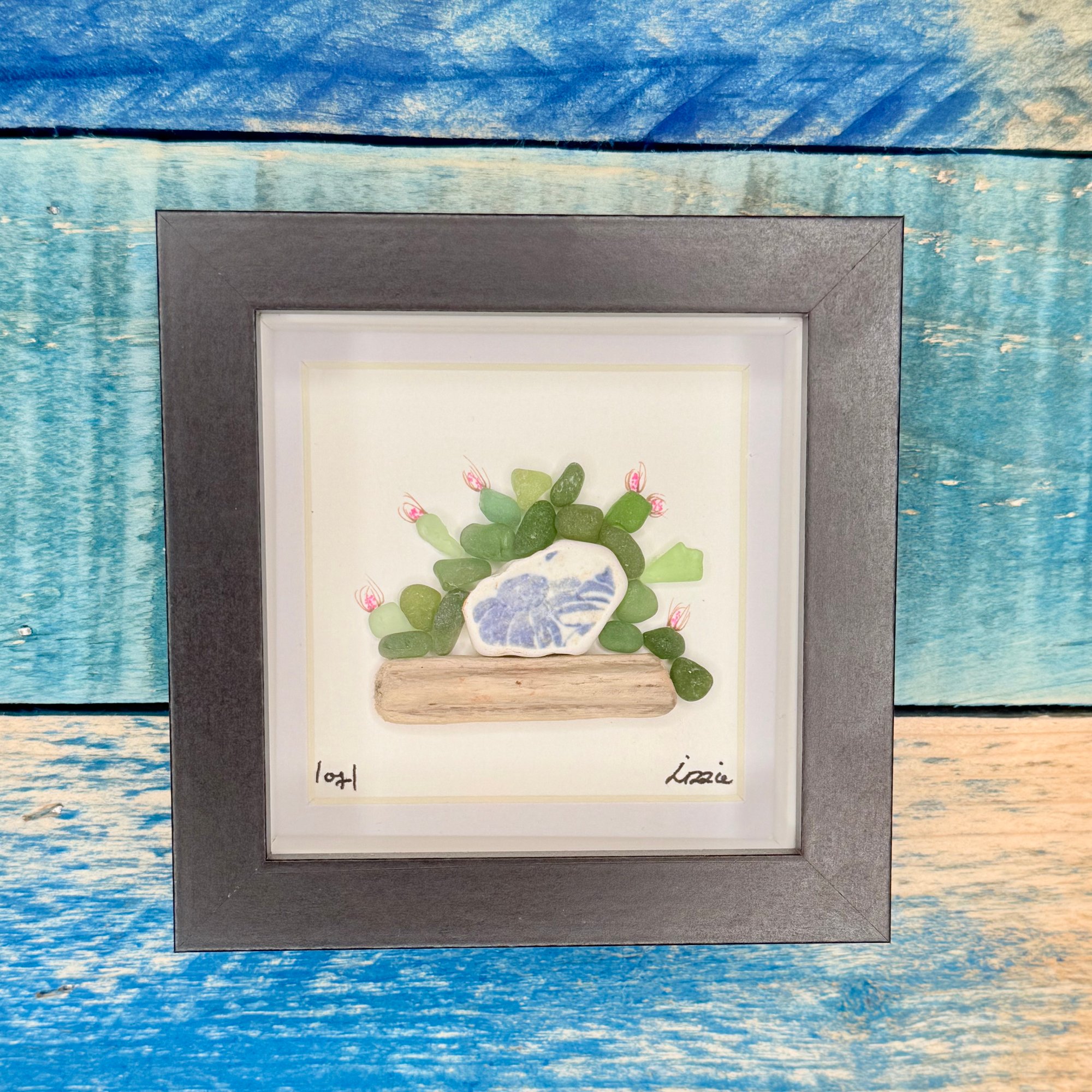 Seaglass succulent, seapottery pot